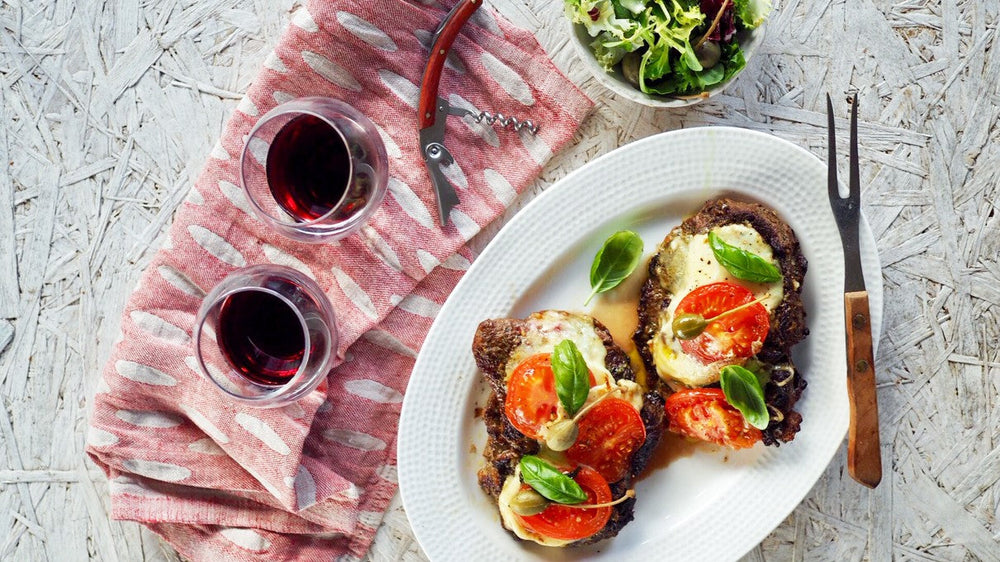 - Viipaloi mozzarella-juusto ja tomaatit. Asettele viipaleet vuorotellen pihvien päälle. Rouhaise päälle pari kierrosta mustapippuria.