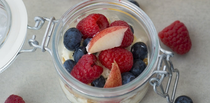 - Juuri ennen kuin tuot annokset tarjolle, koristele marjoilla ja/tai nektariineilla.